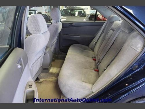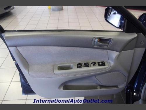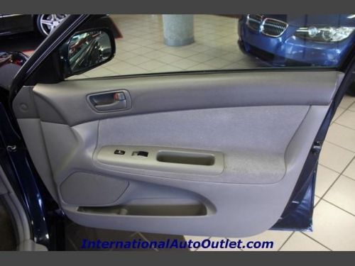 2004 Toyota Camry LE--IMMACULATE--EXTRA CLEAN--A MUST SEE TO APPRECIATE--MOST OF OUR VEHICLES ARE HIGH QUALITY, HAND PICKED, ONE OWNER IN A LIKE NEW CONDITION WITH A CLEAN CAR FAX. ALL ARE FULLY INSPECTED, SERVICED AND RECONDITIONED, THOSE THAT DO NOT MEET OUR MECHANICAL CRITERIA ARE NOT OFFERED FOR SALE. MOST OF OUR VEHICLES ARE COVERED WITH THE MANUFACTURER WARRANTY OR A 3 MONTHS/4500 MILE WARRANTY. FINANCING IS AVAILABLE AND TRADES ARE ALWAYS WELCOMED. FOR SIMILAR GREAT DEALS PLEASE VISIT OUR WEBSITE http://www.InternationalAutoOutlet.com At International Auto Outlet, we take pride in maintaining a large selection of fully reconditioned, inspected, certified vehicles. With over 200 quality certified cars, vans, and trucks from local dealer trades, overstocked inventory, off-lease manufacturer auctions, bank repossessions & open auctions, we have the perfect vehicle for you- and your budget. Call, email or visit our website today.