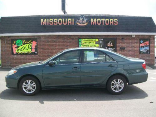 THIS 2005 TOYOTA CAMRY IS THE MOST RELIABLE IN ITS CLASS AND WHEN YOU FACTOR IN ITS AMAZING FUEL ECONOMY THIS CAR CAN'T BE BEAT!!! HURRY IN TODAY AND DRIVE THE SAME DAY!!! Make: TOYOTA Model: CAMRY Engine: V6 Ext./Int.: GREEN/BEIGE POWER LOCKS, WINDOWS, AND MIRRORS! POWER MOONROOF CD PLAYER V6 ENGINE!! INTERIOR IN EXCELLENT CONDITION REMOTE ENTRY At Missouri Motors we stand behind EVERY Vehicle with a 3 month/ 4500 mile warranty giving you confidence and peace of mind with your purchase. For added security we provide a Complete 125 Point inspection and reconditioning process and a oil change is mandatory during this process along with a Missouri State Safety & Emissions Inspection certification before ANY Vehicle is ready for sale.You will be amazed at what awaits you at Missouri Motors. Our prices matched by the impeccable personal service you will receive will astonish you. Prices reflect cash purchase and do not include finance charges or sub prime lending. YOU WILL NOT BE DISAPPOINTED. This Vehicle RUNS,DRIVES, & LOOKS AMAZING!!!!! Come in, call 888-871-5940 or click WWW.MISSOURIMOTORSLLC.COM today and see for yourself. We have a friendly and committed sales staff with over 25 years of experience dedicated to satisfying our customers' needs. ALWAYS REMEMBER, at Missouri Motors, EXCELLENCE IS THE STANDARD, SATISFACTION IS THE GUARANTEE!!!! Every car comes complete with a 3 month 3 thousand mile warranty. If you have ANY questions Please call us at 888-871-5940 or click www.missourimotorsllc.com