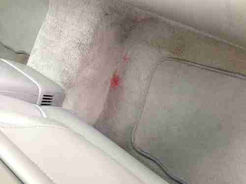 THERE IS A RED STAIN IN THE REAR FLOOR ON DRIVER SIDE THAT I HAVE NOT BEEN ABLE TO GET OUT.