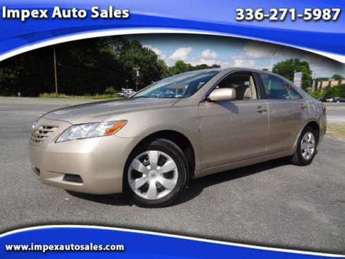 CLEAN CARFAX!! This 2007 Toyota Camry LE is equipped with the following options: automatic transmission, power windows, power door locks, cloth seats, am/fm cd player, steering wheel audio controls, dual air bags, air conditioning, cruise control, keyless entry and much more!! CALL 888-489-3487 TODAY!! Impex Auto Sales is the Triad's LARGEST independent Pre-Owned dealer! Now accepting all major credit and debit cards! Visa, MasterCard, Discover, and American Express! Because we sell so many cars, trucks, motorcycles, and commercial vehicles, our prices are the ABSOLUTE LOWEST!!! We are a family owned and operated business serving the Carolinas since 2004. Contact us at 888-489-3487 or ImpexAutoSales.com.We pride ourselves on our reputation for honest service and delivering quality automobiles. Come by today and let us show you how purchasing a pre-owned vehicle SHOULD BE! We offer free shuttles from Greensboro's Piedmont-Triad International Airport (GSO), Greensboro Amtrak Station (GRO), and the Greensboro Greyhound Bus Terminal. We respect and honor your time so we can ship autos all over the United States and export all over the world! Don't trust just anyone to transport your new car! Our experienced partners in the shipping industry to Africa, Asia, South America, North America, and Europe makes us the Most Dpendable in the industry. Contact us for a shipping quote and get your vehicle fast! We are proud to have sales representatives fluent in English, Spanish, French, Arabic, and Japanese for the convenience of our valued customers. *****Please note, while we make every effort to ensure that our vehicles are listed accurately, we are not responsible for errors or omissions. Please verify all options, colors, vehicle condition, pricing and AVAILABILITY prior to purchase.****** We have a hassle free business approach that provides a relaxed and comfortable environment for our customers. Sell us your car even if you don't buy from us! We don't play the games that other dealers do: If you sell or trade to us, you get the same price! Come in today for a quick appraisal! They generally take no longer than 15 minutes! Stop by and get the best deal on a used car, guaranteed!