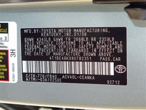 VIN (Vehicle Identification Number): 4T1BE46KX8U782351