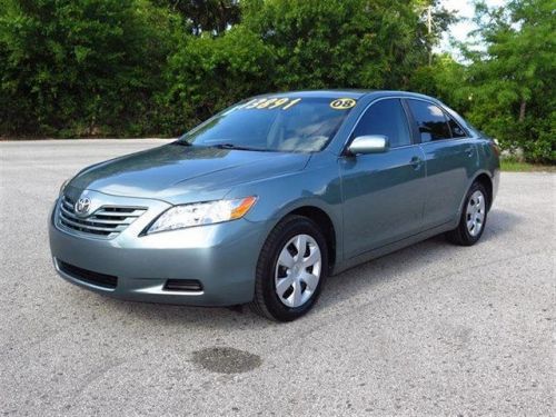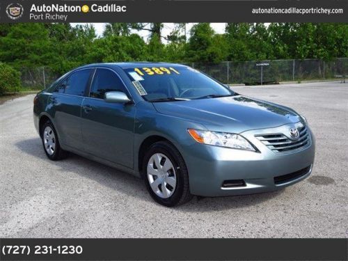 Drive off the lot with complete peace of mind, knowing that this Camry LE is covered by the CARFAX BuyBack Guarantee. At AutoNation Cadillac Port Richey, we want you to know that you can be confident in your purchase with us. AutoNation Cadillac Port Richey presents this lightly used Carfax One-Owner 2008 Toyota Camry LE as just one example of our quality pre-owned offerings. You know exactly what you are getting when you purchase a Certified Pre-Owned like this Toyota Camry. This vehicle was engineered to be both economically and environmentally friendly with exceptional fuel efficiency. A Toyota with as few miles as this one is a rare find. This Camry LE was gently driven and it shows. If you are looking for a pre-owned vehicle that looks brand-new, look no further than this Aloe Green Metallic Toyota Camry. When this vehicle was shipped from the factory, Toyota decided that no option should be left off of this magnificent automobile. So, if you're in the market for a Camry LE that is equipped with copious amounts of options, then AutoNation Cadillac Port Richey may just have the perfect vehicle to suit your needs. The paint and body on this Camry LE looks as fresh as the day it rolled off the assembly line. More information about the 2008 Toyota Camry: The 2008 Toyota Camry continues to live up to its reputation as one of the most sensible buys among mid-size sedans, from the frugal-but-well-equipped four-cylinder CE model to the V6 XLE that flirts with having luxury-car appointments. For 2008, Toyota has removed some standard equipment and $1,000 from the base price of the Hybrid, making it easier to go easy on the biosphere. Interesting features of this model are smooth, quiet ride., available fuel economy and performance, luxury-car amenities, Value, and roomy interior Call our Internet Sales Department and Save an additional $200 off the Internet Price listed above.