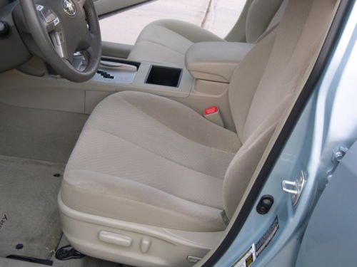 2009 Toyota Camry gasoline Hybrid. Best body style Camry to date. (33mpg city/34mpg Highway) 17,000 original miles, $22,000.00 with excellent Carfax report included. [KBB Certified Pre-owned Dealer Price $23,187.00] Dealer serviced. One owner, always garage kept. Rare Sky Blue Pearl with Bisque Fabric interior, power windows with driver’s auto-down, locks with anti-lockout feature and retained power features, remote hood, trunk and fuel-filter door releases, Leather wrapped shift knob and leather wrapped Tilt/telescopic energy absorbing collapsible column steering wheel with audio and climate controls, washer-linked variable intermittent windshield wipers with mist cycle, defroster-linked CFC-free dual zone auto climate control with electric compressor and Plasmacluster ionizer and rear seat vents, HomeLink universal transceiver, overhead console with map lights and sunglasses holder, lockable illuminated glove box and bi-level covered center console with storage and cup holders, fold down rear center arm rest with dual cup holders, 16” 8 spoke aluminum alloy wheels. Aerodynamic multi-reflector halogen headlamps with auto on/off feature, daytime running lights (DRL) with off mode, Dual color-keyed power outside mirrors, Acoustic noise-reducing front windshield, day/night rearview mirror with compass, high solar energy absorbing (HSEA) glass, heavy-duty electric rear window defogger with timer, Multi-function remote keyless entry system with lock, unlock, trunk-release and panic features, Smart Key System with Push Button Start and remote illuminated entry, JBL AM/FM 6 disc-in-dash CD changer with satellite radio capability, MP3/WMA playback capability, auxiliary audio jack, hands-free phone capability via Bluetooth wireless technology, eight speakers in six locations and FM diversity reception, Multi-information display with ECO Drive level hybrid system energy flow, temperature, average fuel economy, driving range, average speed and travel distance since start, Optitron meters with speedometer, instant mpg , coolant temperature and fuel level gauges; digital odometer and twin tripmeters, metallic-style interior trim with chrome handle accents, multi-adjustable power driver’s seat with adjustable headrest, dual seatback map pockets and lumbar support, 60/40 split fold-down rear seat with security locks, adjustable headrests and seatbelt positioning clips. Driver and front passenger Advanced Airbag System including side airbags with rear side curtain airbags and driver’s knee airbag, 3-point front seatbelts with Automatic/Emergency Locking Retractors (ALR/ELR) for all passengers, outboard rear seatbelt comfort guides, front and rear crumple zones and side-impact door beams, Anti-lock Brake System (ABS) with Electronic Brake-force Distribution (ERD), foot pedal parking brake, direct Tire Pressure Monitor System (TPMS), Vehicle Dynamics Integrated Management (VDIM), child protector rear door locks, rear-seat Child Restraint System (CRS) lower anchors and top tether brackets (LATCH) internal trunk release handle, battery saver feature-deactivates interior lights after 20 minutes, engine immobilizer, chrome tipped exhaust. Premium vehicle. Bring your mechanic. Take the vehicle to any new car dealership of your choosing for inspection. Leave message. |