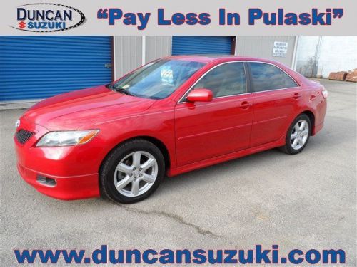 Driver & Passenger Power Seat & Leather Package, Leather Package, Moonroof Package (Dual Illuminated Visor Vanity Mirrors and Rear Seat Personal Lamps), Sport Convenience Package (Garage Door Opener), Sport Leather Package (Driver & Passenger Heated Seats and Power Heated Outside Mirrors), and Cloth. This wonderful-looking 2009 Toyota Camry is the fuel-efficient vehicle you've been aching for. Any late-model, pre-owned Camry represents a safe and smart buy for anyone shopping in this segment and price range. This Camry SE, which was on the third year of a great redesign, is a perfect example of such a purchase. New Car Test Drive said, "...boring and bland are out. Flash and dash are in..." J.D. Power and Associates gave the 2009 Camry 4.5 out of 5 Power Circles for Overall Initial Quality. To Check Availability, Schedule a Test Drive or Receive the "Special" Internet E-Price please ask for Kyle Irvin at 888-768-4668 and remember to "PAY LESS IN PULASKI" To Check Availability, Schedule A Test Drive or Receive the "Special" Internet E-Price please ask for Kyle Irvin at 888-768-4668 and remember to "PAY LESS IN PULASKI"