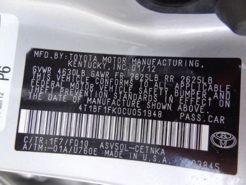 VIN (Vehicle Identification Number): 4T1BF1FK0CU051948