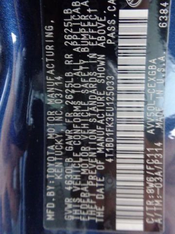 VIN (Vehicle Identification Number): 4T1BD1FK3EU125033
