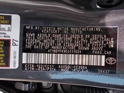 VIN (Vehicle Identification Number): 4T1BD1FK9EU111024