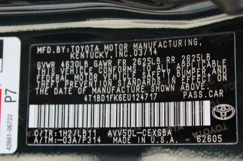 VIN (Vehicle Identification Number): 4T1BD1FK6EU124717