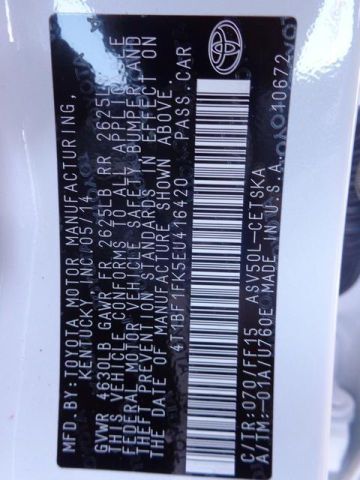 VIN (Vehicle Identification Number): 4T1BF1FK5EU416420