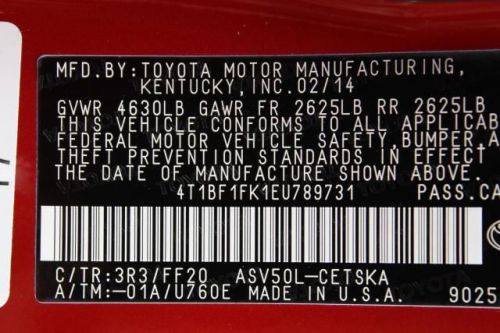 VIN (Vehicle Identification Number): 4T1BF1FK1EU789731