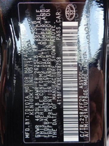 VIN (Vehicle Identification Number): 4T1BF1FK9EU828758