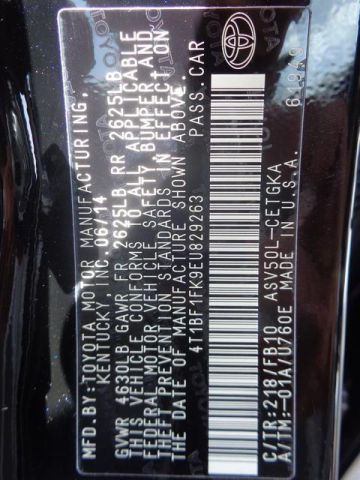 VIN (Vehicle Identification Number): 4T1BF1FK9EU829263