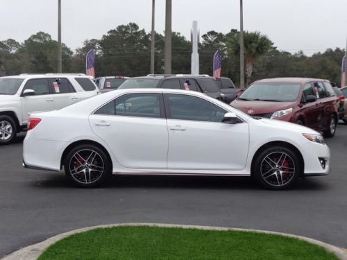 Imagine yourself behind the wheel of this good-looking 2014 Toyota Camry. A roomy car, coupled with a fuel-efficient powerplant, does not come up for grabs very often, so you better act fast. This Camry is nicely equipped with features such as Black/Ash 2-Tone w/SofTex Seat Trim or Leather-Trimmed Ultrasuede Seats, ABS brakes, Electronic Stability Control, Low tire pressure warning, and Traction control. White 2014 Beaver Toyota Camry XSP PACKAGE is a 4D Sedan FWD . This Florida Sedan has a 2.5L I4 SMPI DOHC engine. Call right now and schedule a test drive. Ask for stock number U538326A, the Florida 2014 Beaver Toyota Camry . Shop Us Online at www.beavertoyotastaugustine.com. Serving Jacksonville, Palm Coast, Daytona, Gainesville and St Augustine. Beaver Toyota St Augustine on 2995 US Hwy 1 South in St Augustine.