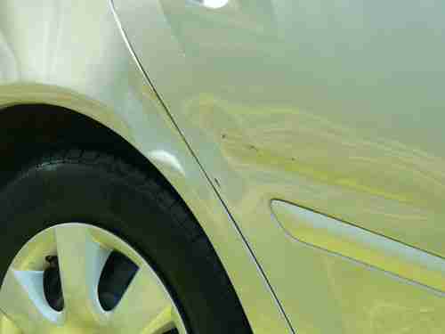 There is a slight rattle in one of the doors. We believe this was from a collision that occurred before we bought the car. There are also three significant blemishes on the body: a gash below the back left door, a dent behind the back left door and scuff marks on the rear bumper. They are shown in the pictures.