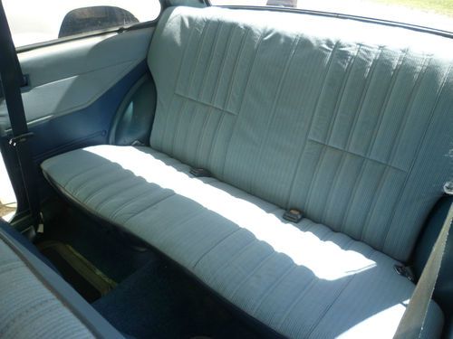 Update: Since typing the above description, the car has sat for a couple of weeks and now it won't start. Battery seems fine. It is probably the starter. The starter may work again, it may just be kind of locked up now from sitting around. You can probably pop the clutch to get it started on a safe incline, or it may possibly need a new starter or something. It may be a simple fix, I don't know. Tested the battery though and it is showing the proper voltage. Also there are no other major dents or scratches on the car anywhere else other that what is described above. It is very clean and the paint is not peeling anywhere. The paint is original and is in very good condition. Also I might can tow/deliver this car to you, if you want and that will cost extra.