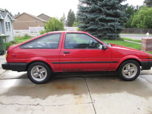 1986 Toyota Corolla SR5 with sunroof 5 speed, RWD open differential. Runs great, drives great sunroof opens, and even the hatch stay up! Clean title, in decent shape for the year and miles. I have owned a few of these cars and this is the best shape and non modified version I have owned. Great AE86 chassis to start with for a Sr20 or 4AGE swap, or just simply drive it! Some surface rust and a few dents, but nothing major, surface rust only. Hurry, a factory red AE86 hatch wont last! https://www.youtube.com/watch?v=Bu6JLaXk4us&list=UUAH9fyKXC4jy4LLqdGHRm8Q |