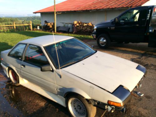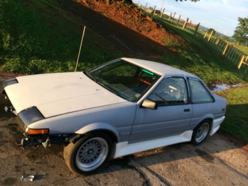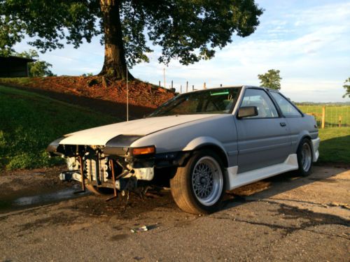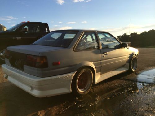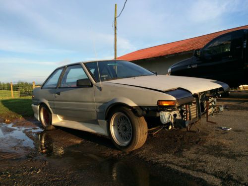 1987 TOYOTA COROLLA GTS AE86 ROLLING SHELL NO MOTOR OR TRANSMISSION. CAR WAS FULLY GUTTED AND BUILT BACK UP. HAS FULL TECHNO TOY TUNING SUSPENSION. CAR HAD A TURBO COROLLA MOTOR IN IT. BUT HAS SINCE BEEN REMOVED. CAR HAS CLEAN TITLE. NO BODY DAMAGE AT ALL. ALL IT NEED IS PAINT. HAS ALREADY BEEN PRIMERED. PLEASE ASK ALL QUESTIONS BEFORE BIDDING. LOOK AT ALL PICS. YOU CAN MESSAGE ME ON HERE OR CALL OR TEXT AT 828-234-2555. THANKS