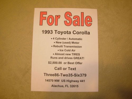 1993 Toyota Corolla, 4-dr, Automatic, Ice Cold Air on 2040-cars