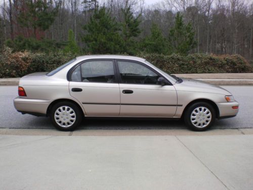 1995 Toyota Corolla DX. Only two owners (both ladies). Zero accidents; shiny paint, runs and looks great (you cannot believe this is a ~20 year old car!). Reliable, gas saver. We bought this car from the original owner in 2003 with ~97K miles. It now has a bit over 200K miles. In the 11 years we have owned this car, we have been diligent with maintenance and it has certainly paid off. No doubt, it is the best purchase we have ever made. In 11 years, we have put an average of 10,000 mainly highway miles/year on the car (2000 miles less than the national average).Regular oil changes, interior very clean, original upholstery and original carpets in great shape. The car has been 100% smoke free for its 19 years on the road. Of course, we have invested in keeping the car running well. Most recent investments are getting the car ready for the next 100K miles. These include: a new serpentine belt, new battery, new distributor cap/finger and wire set, and less than 500 miles since the last tune-up. Bid with confidence, this is a no reserve auction. Please contact me if there are any questions. If you are interested, I also recorded a small video of this car available to see on YouTube upon request. Happy bidding, and thanks! |
