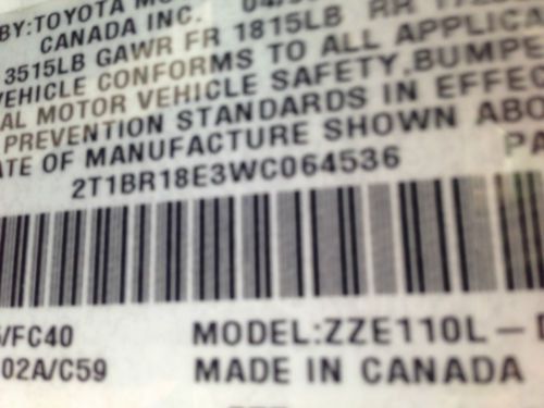 Toyota corolla 4dr sdn auto le low miles sedan automatic gasoline 1.8l dohc sfi(US $16,389.00)