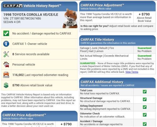 2000 toyota corolla ve great commuter car! clear title! high autocheck score!(US $3,200.00)