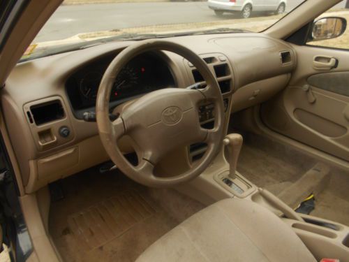 for sale 1999 Toyota corolla 168257 miles. NEW PARTS LAST YEAR four new struts, rear brake pads, new sway bar bushings and end links, idler tensioner and belt tires are about 50% I also install a rear hitch to a bike rack or small trailer great for lowes or walmart runs that wont fit in trunk THE BAD no passenger seat, no head liner or rear speakers and cover or radio and air vents, locked my keys in the car a while ago so I had to break the driver door handle and no inside handle so you have to find and pull the handle lever, my dad backed up into me in the driveway so the hood is little dented but otherwise great also the check engine light as been on for about 6 months never got it checked out but drives great no problems I would assume cat converter or o2 sensor because mpg decreased slightly to about 25mpg from 29mpg other wise runs great with leaks or smoke its been a great little commuter car but decided to get small suv because of a new baby nj inspector sticker good till 11/2014 no reserve On Mar-17-14 at 13:53:53 PDT, seller added the following information: I removed the passenger side seat because I had the dog in there and she chewed the seat and I never got a replacement for it. Also the head liner was starting to sag down and break apart so that's why there is no headliner as for as the radio goes I removed for a new one and never got around to replace it |