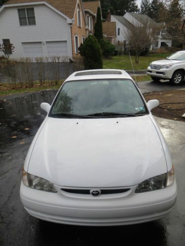 We used this as a 3rd car the last few years, but recently have no need for it now. Drives like the day I drove it home from dealer, no problems ever. Fully loaded /top of line corolla at the time. I've always done most of the maintenance on the car. It requires very little. spark plugs replace at 100K, oil every 3K miles, just had brakes flushed, rear brakes replaced, new front exhaust pipe, new valve cover gasket. other things ive done professionally exterior detailed. brand new front/rear bumper covers - prior ones scratched. brand new hood, fenders, latch, hinges. replaced front windshield new starter new battery new wipers new MAF sensor brakes on front good. front struts replaced about 2 years ago. plenty of tread on tires. floor mats included have most of records for car and window sticker/manuals! original owner, and well cared for. looks brand new - minor surface imperfections here and there, some scratches on inside plastic paneling. Clean engine bay. Here are more pictures No low ball offers. If you find any 2000 corolla better than this, god bless you. Vehicle will continue to be driven lightly until sold - above mileage may change. PA Stickers good thru march 2014. $500 deposit via paypal - Cashier check for remainder. Car is also listed for sale elsewhere, so reserve right to end auction. Any questions, call me 610-710-6430. honest seller. Lots of time/$ put into this car. |