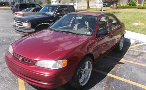 2000 Toyota Corolla VE Maroon w/Tan interior with only 137k miles. Great exterior with minor dings and scratches. Interior is in good condition for its age and all instrumentation in perfect working order including A/C and radio. 15" alloy rims with good tires! Great and dependable DISCLAIMER: I can only describe what is evident. I am not responsible for inaccurate or incomplete descriptions of the vehicle. I make every effort to photograph and show details, however, if something is missed or damage is not shown that is not my responsibility. The buyer has every opportunity to inspect the vehicle PRIOR to buying. If you cannot inspect the vehicle prior to buying then you are buying at your own risk. Vehicle is sold in “as is” and “where is” condition. Once the vehicle is paid for and leaves my location there are NO REFUNDS and NO RECOURSE. Buyers may schedule an appointment to view the vehicle What is visible: normal wear, minor dents and scratches,& a small crack across the windshield... passenger seat has a small tear , the roof top lining has a small tear..