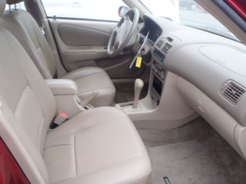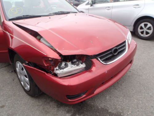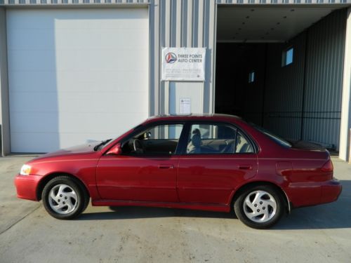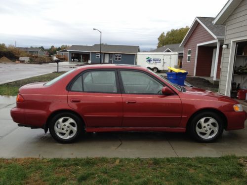Selling not a super clean or extra clean, but simply like new, yes just like 1 year-old, 2001 Toyota Corolla 4 doors sedan LE, Loaded (Leather, Sunroof, Alloy Wheels, Cruise Control, Fog Lights, CD, etc.....). 1 owner, and having just 17K mile!!!. The car was driven approximately 1400 mile a year. We bought the car from an insurance auction in Philadelphia PA whereas it had a front impact with another vehicle, please see the attached pictures prior repair, the car was in a running and driving condition when we bought it. So We flew and drove it back to SD, repaired it and used it as a personnel vehicle for almost a year; now, we decide to let it go.