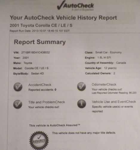 2001 Toyota Corolla Southern Owned Leather Seats Sunroof Gas Saver No Reserve on 2040-cars