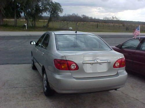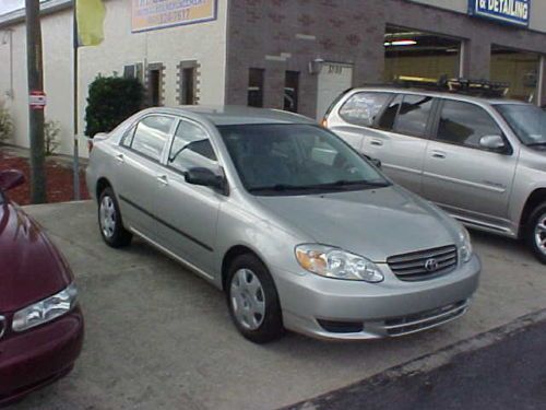 HERES A VERY NICE 2003 TOYOTA COROLLA ONE OWNER LOW LOW MILES 43,400 NO PAINT WORK ,NEW TIRES ,ELDERLY LADY DRIVEN.THERE ARE NO ISSUES WITH THIS CAR YOU COULD DRIVE IT HOME ANYWHERE WITH NO WORRIES. PLEASE CALL FOR ANY MORE INFO TOM 863 521 2641 OR E-MAIL ME AT trevocio@aol.com THIS CAR IS BEING SOLD BY PRIVATE SELLER I ALSO KNOW A SHIPPER WHO WILL TREAT YOU RIGHT ON SHIPPING!