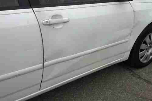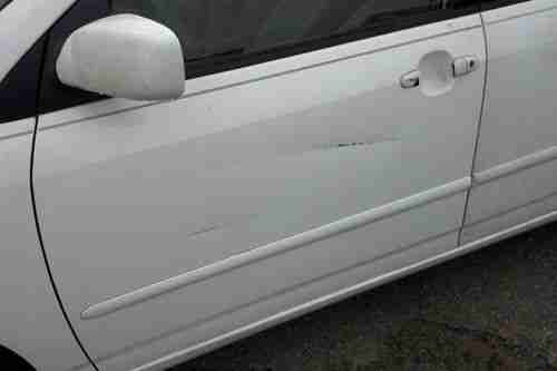 For sale is a 2003 Toyota Corolla LE. It is white with tan cloth interior. There are 155,677 miles on it. Overall the car is in ok condition. As you can see from the pictures there are some dents, dings, and scratches throughout the car.