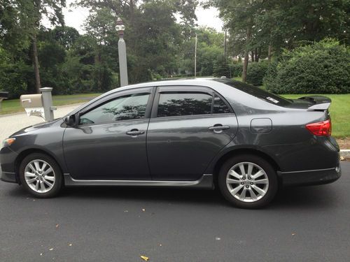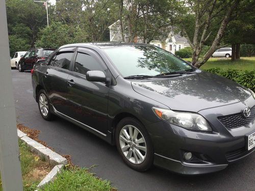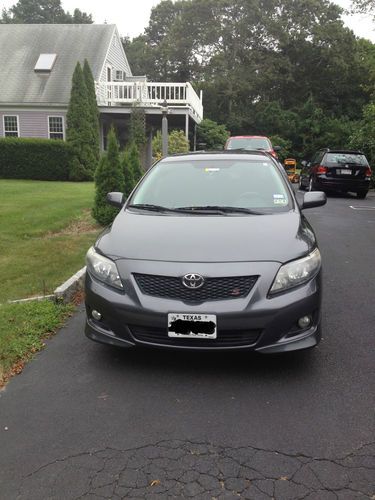 Toyota Corolla S (sport) edition. This is a 2009 model year, bought new for my daughter who is a Captain in the Army and serving our country in Afghanistan. She was to have a 6 month deployment, and now it has been extended another 9 months, so she has decided to sell her prized Toyota. This was bought new at Boch Toyota in Norwood, MA and has resided it's entire life in El Paso, TX until it was placed in storage in our Cape Cod home. The auto is close to flawless, except for a door ding on the driver's side rear door. It has 58,000 miles. Serviced by the Toyota book, at ONLY Toyota dealerships! All receipts and the maintenance book has been stamped by the dealership performing the service. The most recent service was in December 2012 when it was parked awaiting her retunr home in June. The car is dark gray, with a black cloth interior. The windows were tinted with 50 state legal 3M material. This carries a LIFETIME guarantee at any 3M certifed dealer. The car has many options, and all function as they should. Actually, it has all options EXCEPT a sun roof, multi cd player and navigation. The "S" trim includes the spoiler package with the ground effects. This is a 4 cylinder car with automatic transmission. Car averages 38 mpg highway and 28 city. New brakes were installed by Dick Poe Toyota in El Paso in November 2012, and new Good Year tires from a national chain with lifetime balance and road hazard warranty in October 2012. This car will make the new owner very pleased at less than 1/2 the price of a new one. NEVER any damage or accidents!