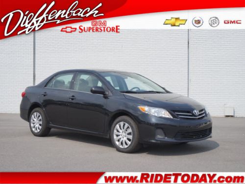 4-Speed Automatic. The Dieffenbach GM Advantage! STOP! Read this! Imagine yourself behind the wheel of this stunning 2013 Toyota Corolla. It is nicely equipped with features such as 4-Speed Automatic, 6 Speakers, 6.5 x 16 Steel Wheels, ABS brakes, Air Conditioning, AM/FM radio, AM/FM/CD Player w/MP3/WMA Capability, Anti-whiplash front head restraints, Brake assist, Bumpers: body-color, CD player, Driver door bin, Driver vanity mirror, Dual front impact airbags, Dual front side impact airbags, Electronic Stability Control, Fabric Seat Trim, Front anti-roll bar, Front Bucket Seats, Front Center Armrest, Front reading lights, Front wheel independent suspension, Heated door mirrors, Illuminated entry, Low tire pressure warning, MP3 decoder, Occupant sensing airbag, Outside temperature display, Overhead airbag, Panic alarm, Passenger door bin, Passenger vanity mirror, Power door mirrors, Power steering, Power windows, Radio data system, Rear anti-roll bar, Rear window defroster, Remote keyless entry, Speed control, Speed-sensing steering, Split folding rear seat, Steering wheel mounted audio controls, Tachometer, Telescoping steering wheel, Tilt steering wheel, Traction control, Trip computer, and Variably intermittent wipers. This Corolla has plenty of passenger space and a hatch area with cargo room galore. Stop in today for a test drive. Nobody Beats a Dieffenbach Deal!