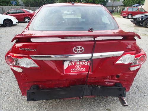 Hello you are bidding on a very nice 2013 Toyota Corolla S with 731 miles. The car is a S model so new it is $20,000 plus taxes and high dealership document fee's. The car sustained damage to the right rear of the vehicle. The quarter is pushed in on the right side. The car will need the quarter pulled, repair rear closeout panel, rear bumper cover,trunklid with lights, rear bumper rebar, and misc bolts and clips. The car still smells like new on the inside, and the car drives great. One other good thing the car has good airbags, and there are no warning lights on. There are used parts available at car-part or on www ebay com. The car is for sale locally and we do reserve the right to end the auction early. The car is available for inspection please feel free to contact me at 502 817 2972 with any questions that you have. I am not responsible for any unseen damaged areas or missed damaged areas on the car. The car is being sold as is with salvage title. The right rear door appears to be ok.