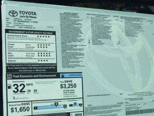 1 12V DC Power Outlet,1 Seatback Storage Pocket,4-Way Passenger Seat,CLOTH SEATS 60-40 Folding Bench Front Facing Fold Forward Seatback Premium Cloth Rear Seat,6-Way Driver Seat,Air Filtration,Analog Display,Automatic Air Conditioning,Cargo Space Lights,Carpet Floor Trim and Carpet Trunk Lid/Rear Cargo Door Trim,Cloth Door Trim Insert,Cruise Control,Day-Night Rearview Mirror,Delayed Accessory Power,Driver And Passenger Visor Vanity Mirrors,Driver Foot Rest,Engine Immobilizer,Fade-To-Off Interior Lighting,FOB Controls -inc: Trunk/Hatch/Tailgate,Front Bucket Seats -inc: 6-way adjustable drivers seat and 4-way adjustable front passenger seat,Front Center Armrest,Front Cupholder,Front Map Lights,Full Carpet Floor Covering,Full Cloth Headliner,Full Floor Console w/Covered Storage and 1 12V DC Power Outlet,Gauges -inc: Speedometer, Odometer, Engine Coolant Temp, Tachometer, Trip Odometer and Trip Computer,HVAC -inc: Underseat Ducts,Instrument Panel Covered Bin and Driver / Passenger And Rear Door Bins,Interior Trim -inc: Piano Black Instrument Panel Insert, Metal-Look Console Insert and Chrome Interior Accents,Locking Glove Box,Manual Tilt/Telescoping Steering Column,Manual Type Adjustable Front Head Restraints and Manual Adjustable Rear Head Restraints,Outside Temp Gauge,Power 1st Row Windows w/Driver 1-Touch Up/Down,Power Door Locks w/Autolock Feature,Power Rear Windows,CLOTH SEATS Premium Cloth Front Seats w/Cloth Back Material,Rear Cupholder,Remote Keyless Entry w/Integrated Key Transmitter, Illuminated Entry and Panic Button,Remote Releases -Inc: Mechanical Trunk/Hatch and Mechanical Fuel,Trip Computer,Urethane Gear Shift Knob,Auto Off Projector Beam Led Low Beam Daytime Running Headlamps w/Delay-Off,Black Grille,Body-Colored Door Handles,Body-Colored Front Bumper,Body-Colored Power Heated Side Mirrors w/Manual Folding,Body-Colored Rear Bumper,Chrome Side Windows Trim,Clearcoat Paint,Compact Spare Tire Mounted Inside Under Cargo,Fixed Rear Get a FREE Car Detail with vehicle purchase!
