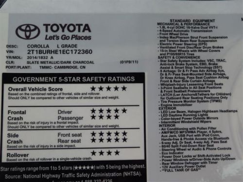 1 12V DC Power Outlet,1 Seatback Storage Pocket,4-Way Passenger Seat,CLOTH SEATS 60-40 Folding Bench Front Facing Fold Forward Seatback Premium Cloth Rear Seat,6-Way Driver Seat,Air Filtration,Analog Display,Automatic Air Conditioning,Cargo Space Lights,Carpet Floor Trim and Carpet Trunk Lid/Rear Cargo Door Trim,Cloth Door Trim Insert,Cruise Control,Day-Night Rearview Mirror,Delayed Accessory Power,Driver And Passenger Visor Vanity Mirrors,Driver Foot Rest,Engine Immobilizer,Fade-To-Off Interior Lighting,FOB Controls -inc: Trunk/Hatch/Tailgate,Front Bucket Seats -inc: 6-way adjustable drivers seat and 4-way adjustable front passenger seat,Front Center Armrest,Front Cupholder,Front Map Lights,Full Carpet Floor Covering,Full Cloth Headliner,Full Floor Console w/Covered Storage and 1 12V DC Power Outlet,Gauges -inc: Speedometer, Odometer, Engine Coolant Temp, Tachometer, Trip Odometer and Trip Computer,HVAC -inc: Underseat Ducts,Instrument Panel Covered Bin, Driver / Passenger And Rear Door Bins,Interior Trim -inc: Piano Black Instrument Panel Insert, Metal-Look Console Insert and Chrome Interior Accents,Locking Glove Box,Manual Tilt/Telescoping Steering Column,Manual Type Adjustable Front Head Restraints and Manual Adjustable Rear Head Restraints,Outside Temp Gauge,Power 1st Row Windows w/Driver 1-Touch Up/Down,Power Door Locks w/Autolock Feature,Power Rear Windows,CLOTH SEATS Premium Cloth Front Seats w/Cloth Back Material,Rear Cupholder,Remote Keyless Entry w/Integrated Key Transmitter, Illuminated Entry and Panic Button,Remote Releases -Inc: Mechanical Trunk/Hatch and Mechanical Fuel,Trip Computer,Urethane Gear Shift Knob,Auto Off Projector Beam Led Low Beam Daytime Running Headlamps w/Delay-Off,Black Grille,Body-Colored Door Handles,Body-Colored Front Bumper,Body-Colored Power Heated Side Mirrors w/Manual Folding,Body-Colored Rear Bumper,Chrome Side Windows Trim,Clearcoat Paint,Compact Spare Tire Mounted Inside Under Cargo,Fixed Rear Win With a focus on building relationships that last, we want to create an ongoing relationship with every customer. We treat every customer with respect and answer all questions thoroughly. Each new vehicle comes with a Lifetime Warranty at no additional charge to you. Call us with any questions or for additional information. Thank you!