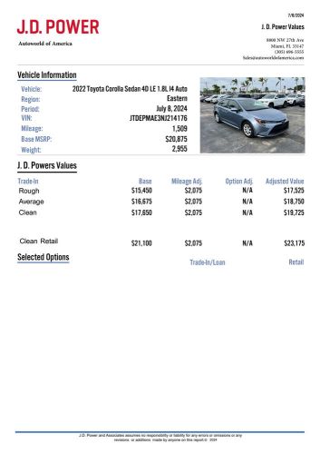 2023 toyota corolla le(US $22,188.00)