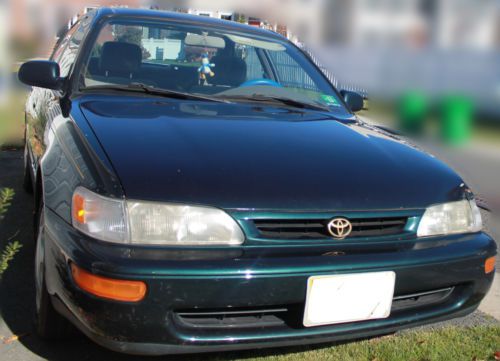 97 Corolla DX - Emerald Green, Gold Trim, Rear Spoiler Low Mileage- 95,873 One Owner Vehicle Report Available Good Mechanical Condition Left Headlight Cover cracked and slightly dented above the left headlight Minor Cosmetic Scratches Grew out of it with growing family. Have Sentimental value to this vehicle. 2 Minor left front side accidents (noted on the Report). They have been very minor - 1st where bumper on left side was cracked and replaced. 2nd minor on the left headlight. NO SHIPPING AVAILABLE. Buyer should be able to pick the car. |
