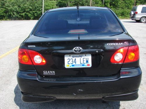 REALLY GOOD DEAL ON THIS 2004 TOYOTA COROLLA S 4 DOOR CAR WITH THE FUEL SAVING 1.8L 4 CYL ENGINE. THIS IS A ONE FAMILY OWNER CAR WITH 2 DIFFERENT SIBLINGS OWNING THE CAR. THIS CAR HAS SOME COSMETIC FLAWS ON THE EXTERIOR BUT MECHANICALLY RUNS GREAT. WE HAVE DRIVEN THE CAR AROUND 250 MILES AND IT HAS NO MECHANICAL ISSUES. THE CAR STARTS EASY AND HAS PLENTY OF GET UP AND GO ON THE INTERSTATE. THE CAR HAS ALL POWER EQUIPMENT ,LOCKS, WINDOWS, CRUISE COLD COLD AC ,AND STEREO. THE CLOTH INTERIOR AND CARPET ARE EXCELLENT FOR AGE AND MILES. THE TIRES HAVE LOTS OF TREAD DEPTH. THE FRONT BUMPER COVER AND FORNT DRIVERS SIDE FENDER EACH HAVE A BASKETBALL SIZE DENT. THERE ARE SOME SCRAPES ON EACH SIDE AND OTHER NORMAL COSMETIC DINGS AND SCRATCHES FOUND ON ANY CAR. SO IF YOU ARE IN THE MARKET FOR A CHEAP DEAL ON A FUEL SAVER THEN THIS IS ONE YOU WILL NEED TO COME TEST DRIVE. IF YOU HAVE A SON OR DAUGHTER LOOKING FOR THEIR FIRST CAR OR A COLLEGE COMMUTER THEN THIS ONE IS SAFE AND RELIABLE. CALL 859-588-1485 FOR QUESTIONS.