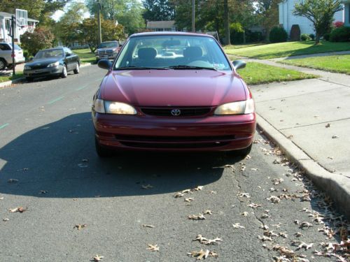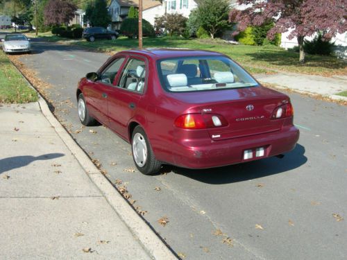 HERE IS A NICE 1999 TOYOTA COROLLA VE THAT RUNS AND DRIVES GREAT. THE EXTERIOR IS IN NICE SHAPE WITH THE PAINT SHINNING BRIGHT. THERE IS NO RUST AND THE TIRES ARE ABOUT 90%. THE 4CYL.MOTOR RUNS QUIET AND SMOOTH. THE TRANSMISSION SHIFTS GREAT. THIS IS A GREAT LITTLE GAS SAVER AND WILL RUN FOR A LONG TIME. THE AC IS ICE COLD. THE CAR DRIVES DOWN THE STREET WITH NO SHAKES OR SHIMMYS. IM SELLING THE CAR WITH NO RESERVE SO HIGH BID WINS. WITH ONLY 118K THIS CAR HAS PLENTY OF LIFE LEFT. ITS PERFECT FOR A 1ST TIME DRIVER OR COLLEDGE STUDENT. IT HAS A FRESH PA INSPECTION AND EMISS. STICKER SO THAT TELLS YOU ITS SAFE AND READY TO GO. GOOD LUCK BIDDING AND THANKS FOR LOOKING. ANY QUESTIONS CALL ME AT 267-475-4000.