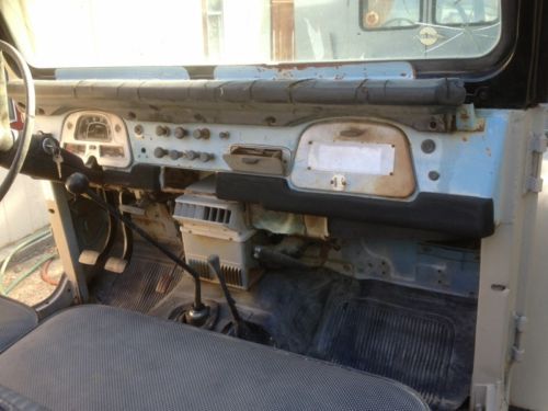 1973 TOYOTA LAND CRUISER FJ40 FROM SUNNY SOUTHERN CALIFORNIA. PRIVATE PARTY OWNED SINCE NEW. THIS FJ40 HAS BEEN USED ON A PRIVATE RANCH DOING CHORES AROUND THE RANCH SINCE 1980, 33 YEARS AGO WHEN IT WAS LAST REGISTERED FOR PUBLIC ROAD USE. SINCE THIS WAS USED ON PRIVATE PROPERTY AS A WORK HORSE, A TOP IS NOT INCLUDED AS IT WOULD ONLY GET IN THE WAY WHEN LOADING. THE LAND CRUISER IS VERY ORIGINAL FROM ITS FADED TAN EXTERIOR TO ITS WELL-USED ORIGINAL SEATS. THE DRIVETRAIN IS ALL ORIGINAL CONSISTING OF ITS 6 CYLINDER ENGINE AND MANUAL TRANSMISSION FEEDING ITS 4X4 SYSTEM. IT RUNS AND DRIVES VERY NICE AND IS VERY DEPENDABLE. THE BODY AND FRAME ARE RUST-FREE AND VERY STRAIGHT. THE BODY HAS BEEN LIFTED 2 INCHES AND 32 INCH ALL-TERRAIN TIRES, WITH LOTS OF TREAD, HAVE BEEN INSTALLED. LOW MILEAGE SHOWN CANNOT BE VERIFIED DUE TO AGE OF THE VEHICLE AND 6 DIGIT ODOMETER. THIS LAND CRUISER WOULD MAKE AN EXCELLENT, EASY FATHER-SON WINTER RESTORATION PROJECT. NOTE THIS LAND CRUISER IS LISTED ELSEWHERE FOR SALE AND MAY TERMINATE THIS SALE AT ANY TIME. SOLD AS IS AS SHOWN WITH NO WARRANTY WHAT-SO-EVER. PLEASE CALL LARRY OR FRED 866-403-7034 FOR MORE INFORMATION. |