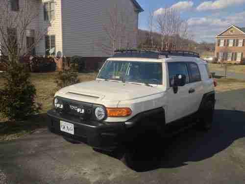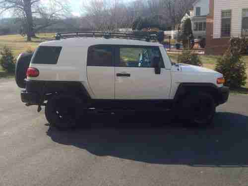 Up for Auction is an Iceberg White 2010 Toyota FJ Cruiser. It has a load of extras! It's been Blacked Out using only Toyota Genuine Parts (side mirror, Bumpers, wings, grille and Rear Valance). It has 38322 highway miles and has never been offroad. 4wd was used for inclement weather and she is a sure-footed beast in the snow. (But if you're here, you already know that! :) ) It has an OEM Tow Hitch, Black 17" MB72 wheels, Custom Gobi Roof Stealth roof rack and ladder, In-dash nav and bluetooth courtesy of the Panasonic AVIC-Z103BT, with steering wheel controls, Two reverse cameras (one in the head unit AND one in the rearview mirror). It has Industrial Forming's Console lockable roll cover. It comes with Toyota OEM floor and cargo carpets AND Huskyliner all weather mats. One owner and Clean Carfax. Just an all-around Beautiful, Clean, and well maintained SUV. If you're in the market for an FJ, this one is for you!