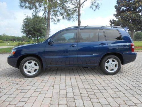 Just Arrived !! Call us anytime @ 888-306-5772 for more information and an appointment !! 2007 Toyota Highlander Limited !! Only 75,380 Miles !! Blue Exterior with Ash Leather Interior !! 3.3 Liter V6 !! 215 HP !! 5 Speed Automatic !! One Owner Florida Toyota !! Loaded with Limited Options !! Factory Sunroof !! Heated Seats !! 3 Seat that Folds Down !! JBL Sound System with CD !! Steering Wheel Controls !! 17'' Factory Alloys and Much Much More !! A carry-over from 2006, the Highlander is a four-door-five-passenger mid-size SUV crossover, offering a car-like feel with the utility of a sport utility. This Limited trim has the optional third row seating extending to seven-passenger capability !! Don't miss out !! This Highlander has it all !! Call us anytime @ 888-306-5772 so we can answer any questions you may have. Thanks for your interest, and we look forward to hearing from you. All Our Vehicles are Serviced and Reconditioned before Delivery and have a Warranty. Financing Available !! Our Cars are in Average to Above Average Condition and are Priced Accordingly and at Fair Market Value !!. We will take your Vehicle in trade, or buy it, even if you don't buy from us. Please visit our website @ http://www.ormondfineimports.com/ for 50 pictures and a full description !! Visit Ormond Fine Autos online at www.ormondfineimports.com to see more pictures of this vehicle or call us at 888-306-5772 today to schedule your test drive.Monday through Friday, 9.am to 5.pm. Call for an appointment for a Saturday test drive.