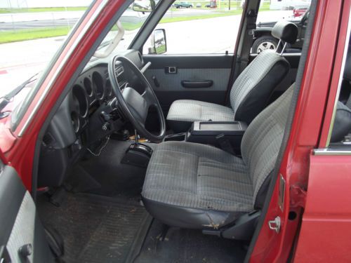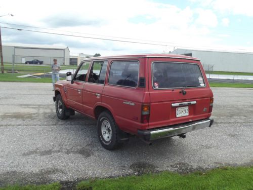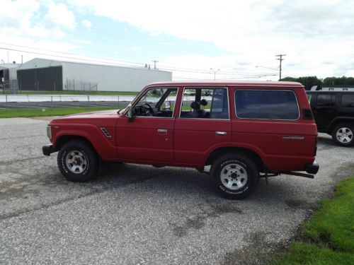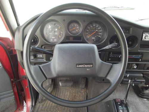 276,300 MILES (My only other vehicle is a motorcycle, listing the truck with higher than actual mileage in case I may need it to drive on a rainy day. Truck will have less miles than listed) Not taken off-road by myself or previous owner. I am (at least) the fourth owner. BODY the bad Old trucks have issues with rust. This Land Cruiser has held up surprisingly well over the years. There is some surface rust around the bottom of the right quarter panel and tail gate, and the left side quarter panel has rust that's broken through and would need to patch panel to be repaired. Those are the worst spots on the entire truck. The other spot of rust is on the roof where there is a hole over the left rear corner, roughly about 1-inch wide. One section of the driver's door has been squished flat, but is not very obvious. Flat section is roughly 14-inch long x 3-inch high, on bottom of the door. Almost blends in with the body lines. Missing chrome rocker trim piece on driver's side. Passenger door lock will not unlock from outside with key, must lock/unlock from inside. Driver's side mirror was cracked, so previous owner used a stick-on replacement to cover the stock mirror, replacement has a crack but shouldn't be an issue. the good Original Paint, Never been in an accident. Still has some cool stickers from 1988 in both front door jambs. Gas cap works, gas door opens with pull lever under the dash or with the key. All locks work (with exception of previously mentioned), all door handles work. All windows are in good condition, no chips, no cracks, no dings. Windshield and front door windows are clear, rear passenger door windows, quarter glass (both sides), and rear window all have window tint. Paint is original single-stage but shines nicely when washed, would buff well. Chrome on bumpers is in excellent shape, mirror chrome is in good shape with small wear spot. Grill is chrome over plastic and still looks okay, but it is flaked off around most edges, face is still shiny though. Both headlights on the passenger side are new Sylvania Halogen lamps, one is low/high beam, and the other is high beam only. New antenna, which works great. Frame rails and cross members look great, spotting scattered throughout where the undercoating had peeled away and surface rust has started but nothing is actually damaged from rust. Floor pans look great, no rust until the back towards the tail pipe, but around that area it is very minimal. ENGINE and TRANSMISSION the bad Small oil leak from the oil filter housing, but between oil changes (3k-5k miles) the loss is still within the safe area on the dip stick. During the winter (in my area the low temp was around -10* farenheit) the engine will take forever to become warm. It is an old truck, and the engine cooling system is very efficient, but in brutally cold temps, it will take it's sweet time getting warm. The exhaust had a couple of broken hangers after the muffler, so two new hangers have been made to replace the old ones. The tailpipe and muffler are rusty and the heatshield above the muffler is totally rusted. the good During the winter this truck would still start faster than many of my neighbors cars and trucks, which are all newer Ford, Chevy, Lexus, GMC, etc etc. The solution for the slow warm up was to block off half the radiator. This decreased airflow, which made the truck heat up faster, which provided heat to the interior. Since it was so cold outside, the truck still had enough cooling efficiency that it ran at a totally normal operating temp. The radiator block off was removed when Mother Nature brought the high 30s back. Cooling system and Antifreeze are great. Engine will not overheat. 276k miles with these trucks is still well within the normal operating range. FJ62 Land Cruisers that are well maintained are capable of traveling more than 400k miles easily. The engine itself has had a throttle body and intake cleaning service, as well as an injector cleaning service within the last 5,000 miles. The previous owner also had a new air filter, belts, cap, rotor, spark plugs and plug wires, and a refurbished Denso alternator installed prior to my purchasing the truck (~6,000 miles ago). I checked the air filter and belts 1,000 miles ago and they are still looking new. The battery was replaced in May 2013, and the starter motor replaced a few months later. Since my ownership of the vehicle, the engine oil and filter have been changed every 3,000 miles using 15w-40 engine oil. Last oil change was August 15, 2014. The engine and transmission have both behaved perfectly normal without any sputtering or hesitation. The transmission is a 4 speed automatic and shifts smoothly, if you floor the gas accelerating to the highway, it holds gears a little longer and has a good kick when it upshifts. This is good. Around town the transmission shifts smoothly and is hardly noticeable, under hard acceleration it shifts much stronger and with enthusiasm. Engine is still running strong, never hesitates. These trucks were never fast, but the acceleration is good and there is still a lot of torque at low rpms. Cruising down the highway between 60-65 mph, the engine speed settles at ~2,000 rpm. Around 70-75 mph the engine speed increases to ~2,500 rpm. Good running engine, in the year-and-a-few-months that I've owned it, I've driven it about 6,000-6,500 miles. BRAKES, WHEELS, TIRES the bad Tires are not new, three are white letter and one is black letter. Tire rotations are going to be a chore because the rear wheels and front wheels are not interchangeable, so the tires would have to be dismounted from each wheel, remounted on the new wheel, and then balanced for a proper rotation. Front wheels have black and brown spotting from brake dust and road grime. I've cleaned the wheels with brushes, cloths, scuff pads, soap and water, and wheel cleaner, the spotting is there to stay. There are also several different sizes of lug nuts on the truck, this is from the shell fallin