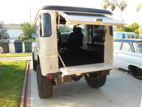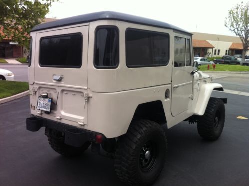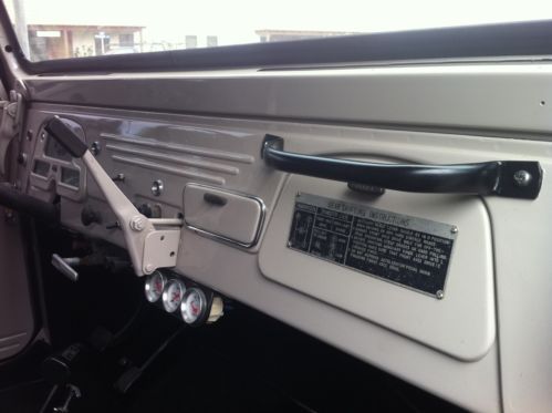 This is a beautiful 1964 Toyota FJ40 Landcruiser, an original Southern California FJ! Finished in the factory Dune Beige color. 4x4, removable hardtop convertible. Upgraded 350 sbc ,automatic transmission with B&M shifter, vintage Edelbrock finned valve covers, HEI distributor, performance wires, aluminum radiator, new battery, high torque starter, upgraded power steering, upgraded power brakes runs and drives excellent. Lifted with brand new 33" Mickey Thompson Baja Claw tires on new black rock crawler rims. Interior has custom black carpet throughout, original bucket seats up front as well as two jump seats in the rear, Grant steering wheel, guage package, hidden Kenwood cd player in glove box with remote and full I-phone capabilities, privacy tint all around, stainless hood hooks, windshield hooks, billet split hood trim, stainless hardware, new emblems. The body and underside of this FJ is very nice as to be expected from an original California FJ. This FJ turns heads all day long and is ready to hit the beach or climb the mountains! I am located in Huntington Beach Southern California 56 2 569 644 9