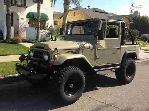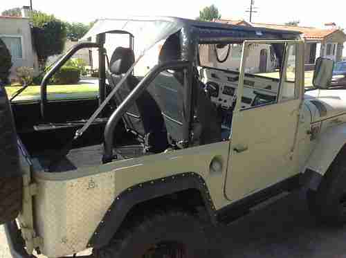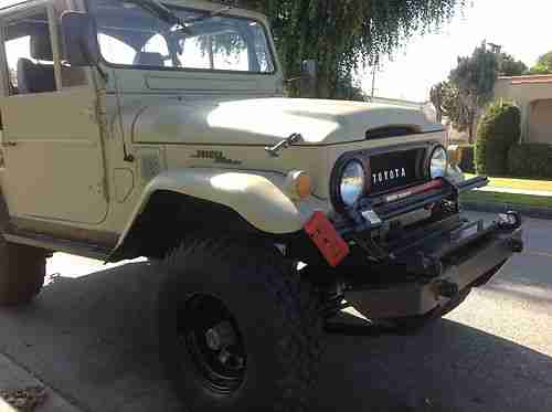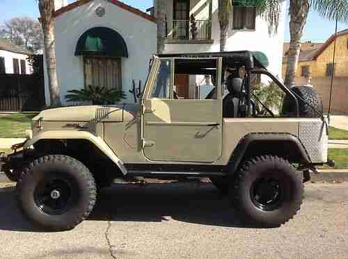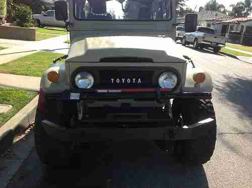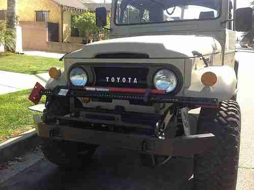 Up for auction is a 1965 Toyota FJ40 Land Cruiser, it has a straight 6 cylinder engine with a granny gear 4 speed transmission (sm420) the axels are 30 spline with Detroit Soft Locker with 4.10 gears. Saginaw power steering.33x12.5x15 tires. New Pro Comp shocks all the way around with matching stabilizer shock. New exhaust system and water pump. Runs great and tracks nice.This truck is built like a tank. Full roll bar, Lexus seats with power seat on drivers side. Working heater. Front mounted Hi-Lift jack and cb radio. Interior has been rhino lined rubberized coating. New bikini top from SOR. hard top included. Please ask questions before bidding. Please bid only if you intend to purchase. I can accommodate shipping but it is at buyers expense. I reserve the right to end the auction at any time. Good Luck and Happy Bidding..