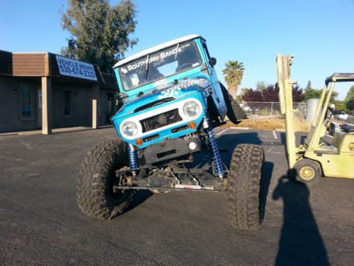 1969 Toyota landcruiser fj40 rock crawler The front is a Chevy Dana 60 Detroit locked Yukon lockouts artec industries truss 3link suspension with 16 inch travel coilovers new hubs and spindles/w 3/4 ton Chevy brakes 41 inch tall 14.50 r20 super swamper interco irok tires The rear is a 14 bolt Chevy blue torch fab trussed disc brake conversion 4 link suspension with 16 inch travel ori struts can be swapped for coil overs if u prefer engine is a 4bt cummins diesel with a new hx30 turbo 3200 rpm governor spring pump professionally tuned by shop nv4500 5 speed trans to dana 300 t case cable shifter this was a frame off about 2 years ago the cab has been rhino lined inside underneath and on the firewall w/ new body mounts prp racing seats rebuilt doors new seals hydroboost brakes ect ect ect. alot of money and I mean a lot went into this rig its a amazing machine only selling it due to needing more funds for building my new race rig this is a off road rig so its being sold as is its been through Fordyce Rubicon and Johnson valley and is one of my favorite toys fell free to call me at 9166063761 if u have any questions my name is Steven keywords: Toyota jeep ford Chevy Suzuki rockcrawler rock crawler 4x4 offroad dana 60 44 14 bolt fj40 tj yj cj xj fj45