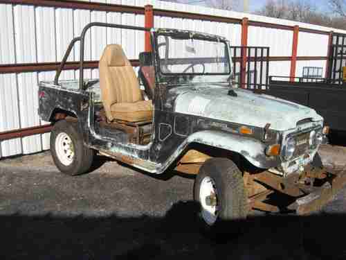 1970 Toyota FJ40 Land Cruiser. In one family it's entire life. One of the best FJ 40 restoration cannidates you will find. Not many early FJ40's bodies in this good condition for restoration projects available today. Has not ran in over 10 yrs. Needs complete restoration. Engine is complete but is locked up and will not turn over from setting several years without running. Three speed transmission. The original factory color is Spring Green, however several years ago it was painted in black primer color. There is no top that goes with this FJ 40 in this auction. What you see in pictures is what you get. As far as rust,it is very very minimal ( see pictures ). Very straight body. The rear floor pan and front floor boards have the usual surface rust only but are very solid including the cross member under the rear barn doors. The area above the rear wheels is also rust free.The rockers and rear panels are rust free. The front fenders are also rust free. The three existing rust holes is confined to the area under the drivers seat in the tool box area and is on flat metal areas that will make for an easy repair of these two areas and a very small hole between seats that is to small to get in a picture. Built in August / 1970. Complete driveline and power train. The windshield is cracked. All body panels are straight except for the left rear fender which is very minor damage and the right running board which is also very minimal damage. The holes that are in the front floor boards you might see in the pictures are factory holes, and the holes in the rear inside fender wells are the factory holes for the factory rollbar but it was replaced with a custom rollbar which left the holes from the original rollbar visible. I've made every effort to give as much detailed pictures and information, however if you have additional questions feel free to contact me via email or by phone at 918-606-1338. No texting please. Good Oklahoma title but tag has not been current for several years.