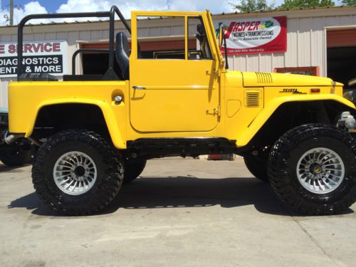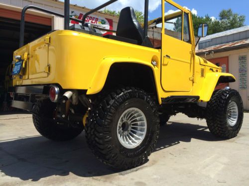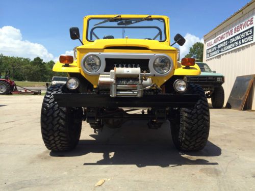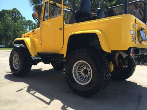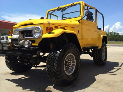 Get ready to hit the road & head to the beach in this absolutely gorgeous 1970 Toyota FJ40 that's under went a frame off restoration! Comes with matching yellow hard top with tinted windows & assisted rear hatch! Engine: Chevrolet 350 V8 w/ Edelbrock Intake & Carburetor, No A/C or Power Steering, Leak Free, Does Not Smoke, Odometer Reads 209 Miles Since Restoration. Drivetrain: Toyota FJ40 3 Speed Transmission, Toyota FJ40 Transfer Case, Toyota FJ40 Axles w/ 4:10 Gear Ratio Front & Rear, As well as Disc Brakes on All Four Corners. Suspension: 4" Suspension Lift Kit Sprung Under Heavy Duty Shackles & Shocks. Tires/Wheels: NEW 33x12.50R15 Nitto Trail Grapplers Wrapped Around 15x10 Hurricane Style Wheels Interior: All New Window & Door Weather Striping, New Window Regulators & Cranks, New Best Top Bucket Seats, & Jump Seat, Weather Proof After Market Steering Column & Wheel, New Vintage Gauges, & Aftermarket Stereo System. Custom Front Winch Bumper Housing 9K LB Winch Vehicle was Completely Rewired When Restoration Was Done. This FJ40 is 98% Rust Free, with the exception of a few very minimal spots on the rear tailgate. We are Located at 20515 US HWY 331 S. Freeport, FL. 32439, This vehicle is available for inspection by appointment only and is for sale locally. Please feel free to contact us via Ask Seller a Question or you may contact me, Deelia Doxey, directly at (850) 880-6643 or email me at superiorauto_fabrication@yahoo.com with any questions that you feel have not been adequately answered. We accept the following forms of payment: bank wire transfers/PAYPAL, cashiers checks/certified funds, cash in person, and money orders. No exceptions! The winner must contact us within 24 hours of auction close or we reserve the right to re-list the vehicle or sell the vehicle to another bidder. Payment in full must be received within the five days after the auction close regardless of your shipping or pick up intentions. The five days after the auction closes are reserved to finalize ownership transfer paperwork. If payment in full is not received in this time we reserve the right to re-list the vehicle or sell the vehicle to another bidder. We will be glad to store your vehicle for a reasonable amount of time at no additional cost to you. By placing a bid you are considered in agreement of the payment terms set forth. Due to the security issues eBay is having with bogus Second Chance offers please note: Second Chance offers will only be sent when appropriate with a request for personal contact to be made to me, Deelia Doxey; so that the buyer can verify that the offer is actually from SUPERIORFABRICATION. Please don't be fooled by a scam! Call me, Deelia Doxey; directly at 850-880-6643 to verify. If you have negative feedback, bid retractions, or other symptoms of a nonpaying bidder, such as bid jamming, your bid may be cancelled. No bid retractions are allowed in the last twenty four hours of any listing. SUPERIORFABRICATION reserves the right to end this listing early due to bid retractions, server problems, or anything else beyond our control. This item is for sale locally. SUPERIORFABRICATION does not give out reserve prices so please DO NOT ASK. If you would like to purchase this vehicle prior to the close of the auction please contact us and we will gladly discuss a "Buy It Now" option. Please remember if you have not secured financing, or can not pay in certified funds PLEASE DO NOT BID! |